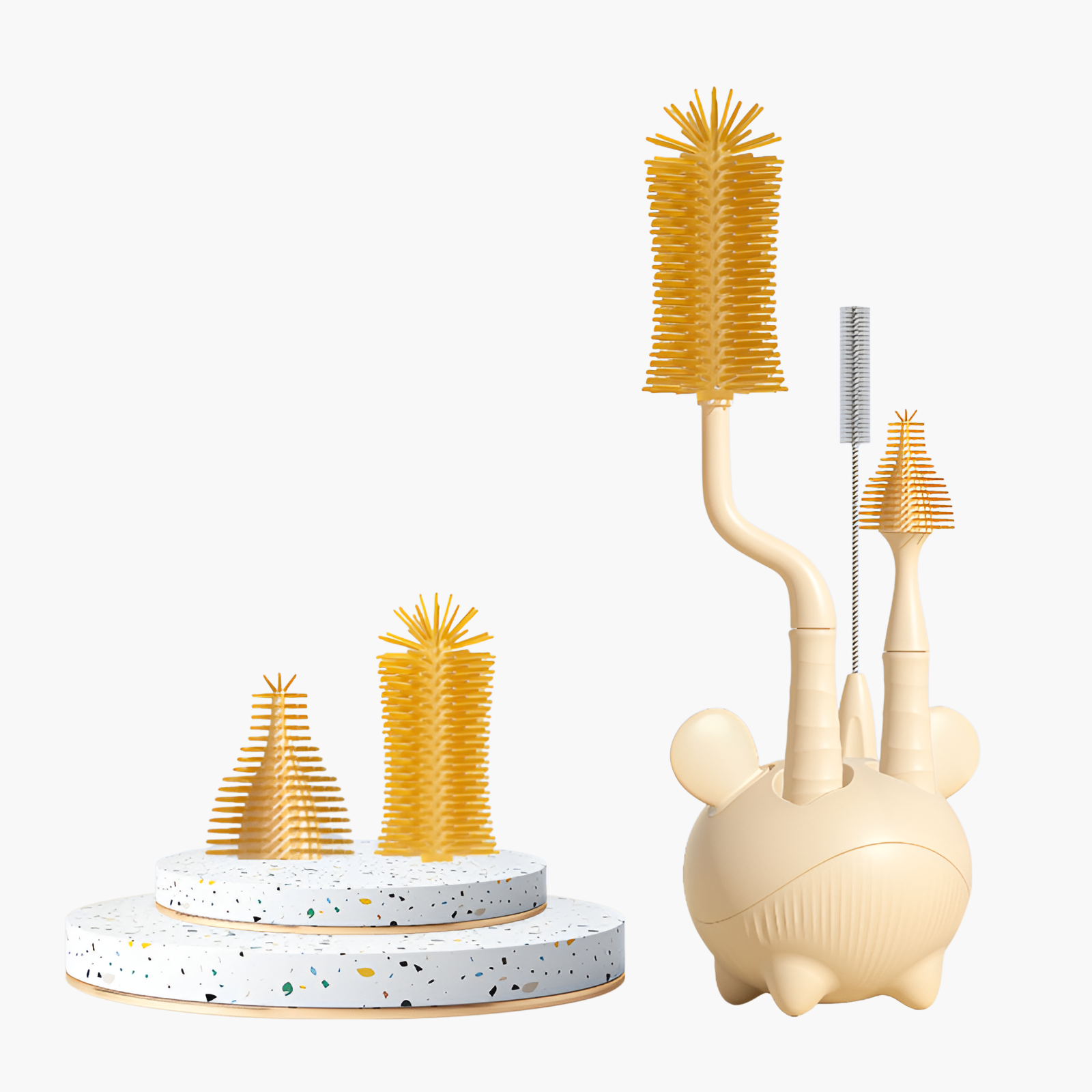 Silicone bottle brush features durable, flexible bristles, safe for all bottle types, heat-resistant, easy to clean, and long-lasting for daily use.