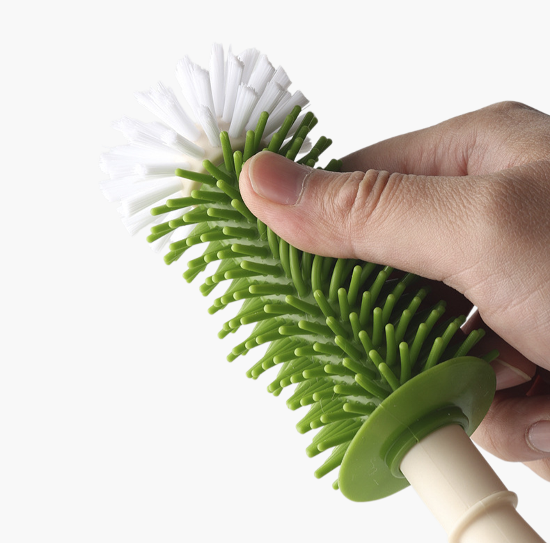 Multi functional silicone nylon brush for easy cleaning, heat resistance, non-scratch design, durable, suitable for kitchen and household use.